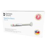O Kit Resina Spectra Basic da Dentsply Sirona é indicado como material restaurador direto para dentes anteriores e posteriores, além de ser utilizado na confecção de restaurações indiretas, como inlays e onlays. Este material microhíbrido, que contém nanopartículas e é radiopaco, é ativado por luz visível e projetado para um uso universal, visando facilitar a aplicação.